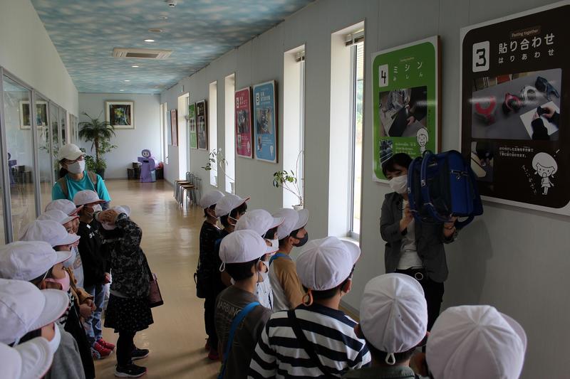 羅羅屋会津若松工場では、ランドセルつくりの様子を興味津々で見学していました。