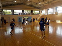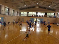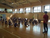 2020年6月16日 15時48分4・5・6年生参加で,体育館で 結団式,引き続き 体つくり運動を行いました。