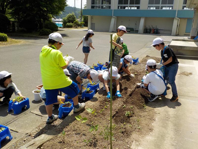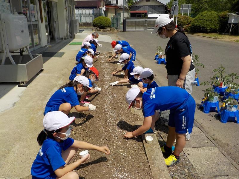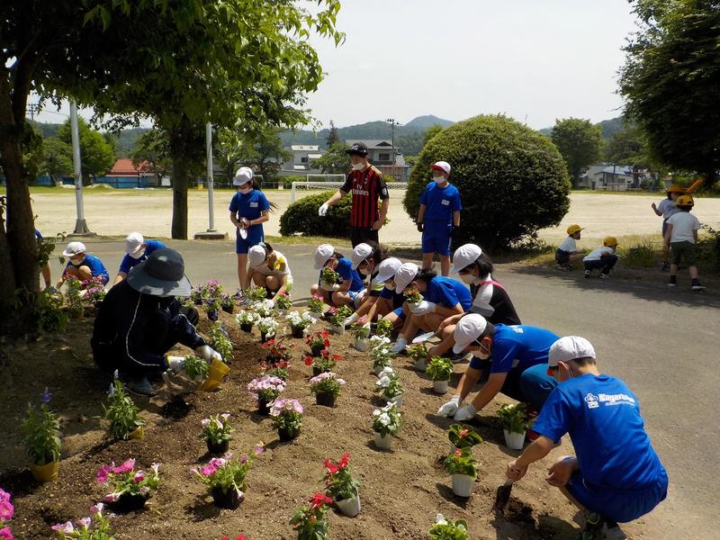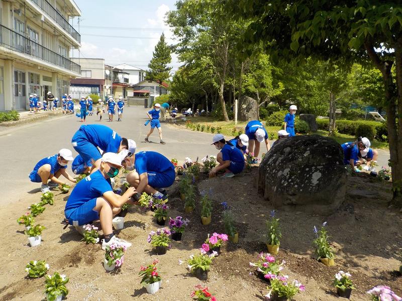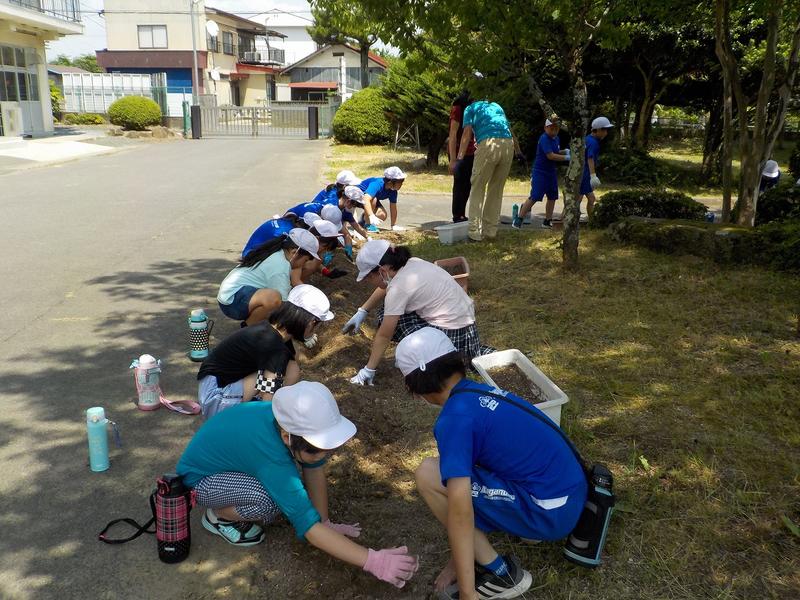 2020年6月4日 14時33分今日は、長小タイムの時間に、全校生でボランティア活動(花植え)を行いました。