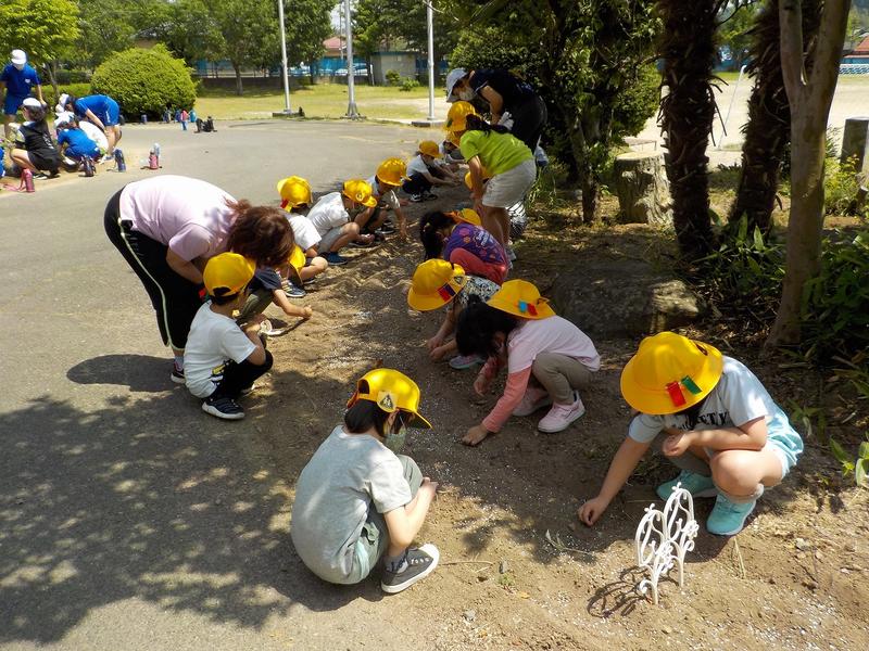 どの学年も汗びっしょりになりながら一生懸命花の苗を植えたり、花のたねをまいたりしました。