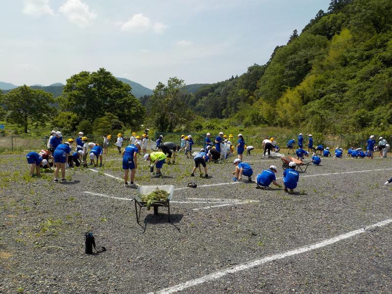 側溝の土上げ,除草,草はらい などで,校舎回り,校庭周辺 などが
