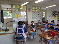 その後,校舎内の学級にもどり 俳句作りです。(写真は,5年生)