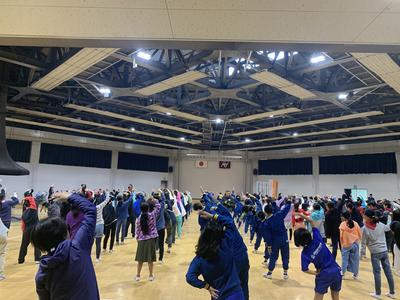 全員元気に起床。朝の集いでは、ラジオ体操を頑張りました。