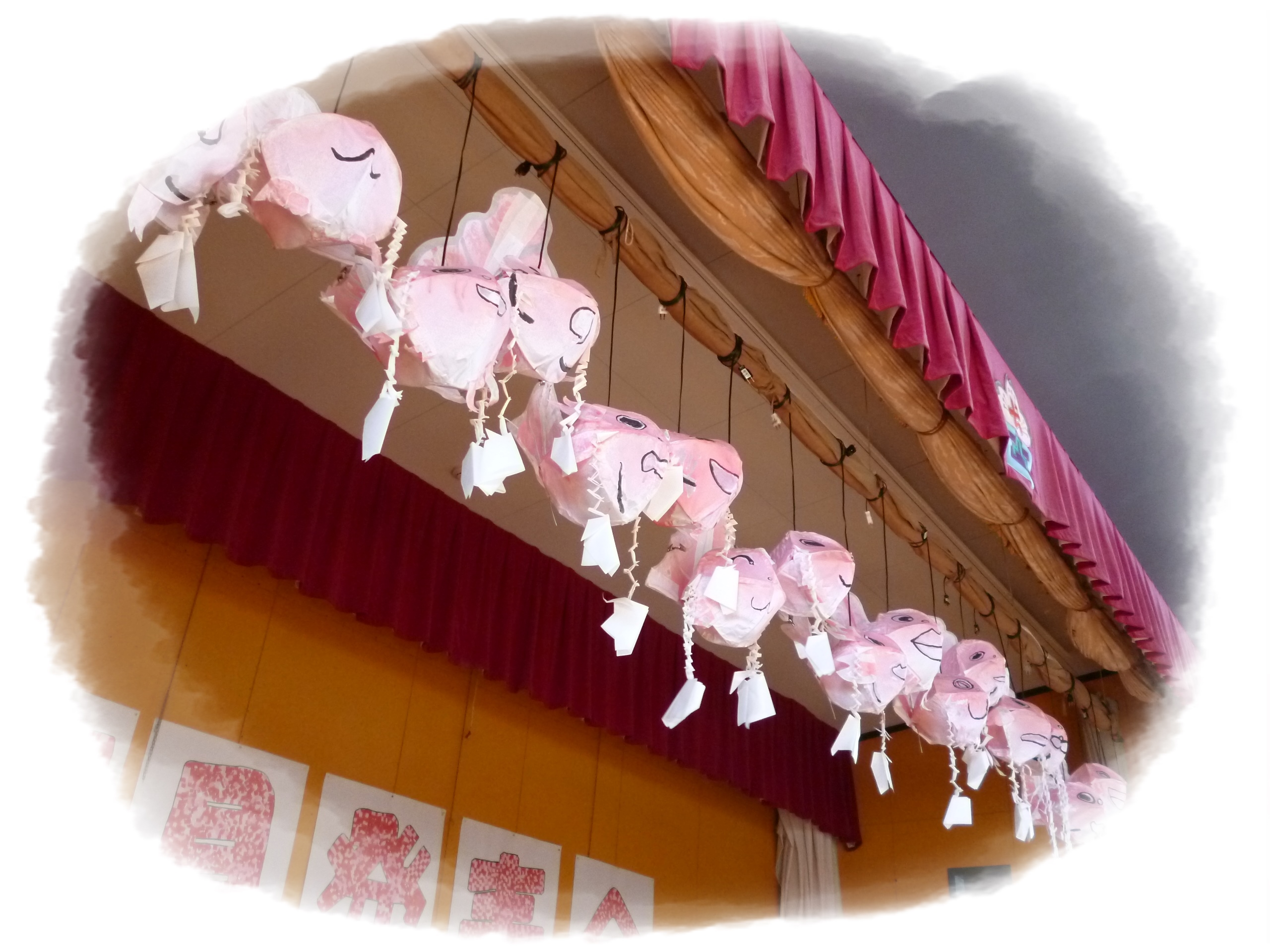 そして、ステージ上に金魚ねぶたを吊るして完成です!