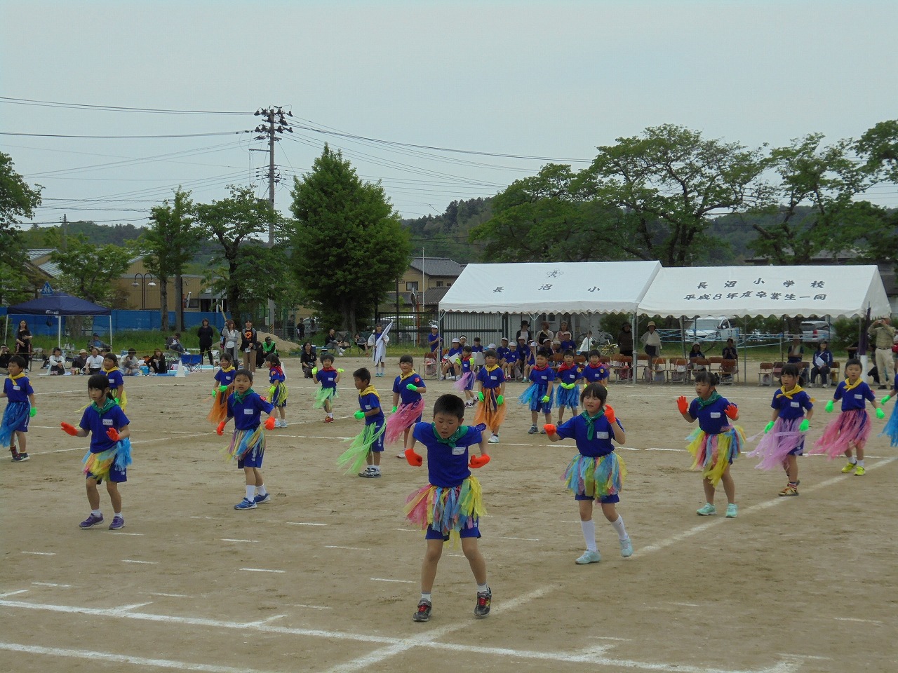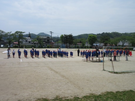 2018年5月2日 17時39分五月晴れの下、12日開催の運動会に向けて、全体練習がスタート。