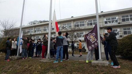 これまで毎朝6年生がやってくれていた国旗・市旗・校旗の掲揚。