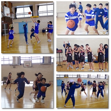5年生と6年生が体育の時間にバスケットボールで対決しました。
