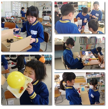 3年生は理科の時間に「おもちゃを作ろう」の学習に取り組みました。