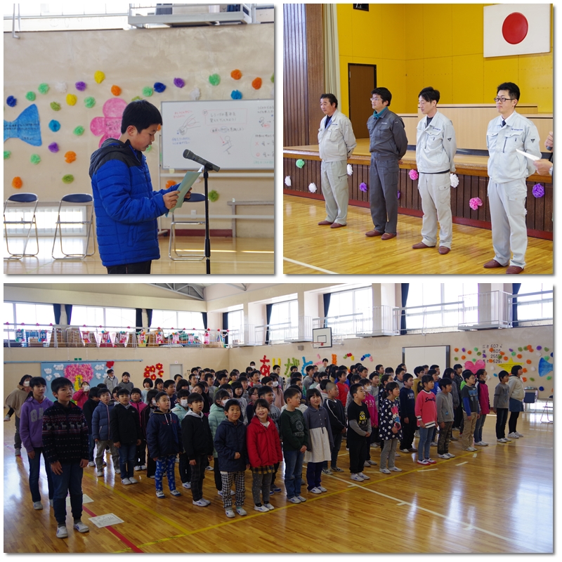 また、代表児童がお礼の言葉を述べ、全校児童が元気に校歌を歌って、感謝の気持ちを伝えました。