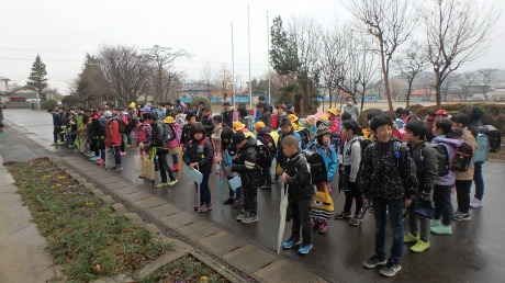 傘のさし方に気をつけながら、班ごとに安全に下校することができました。