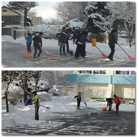 6年生が登校するとすぐに自主的に雪かきを行ってくれたので、