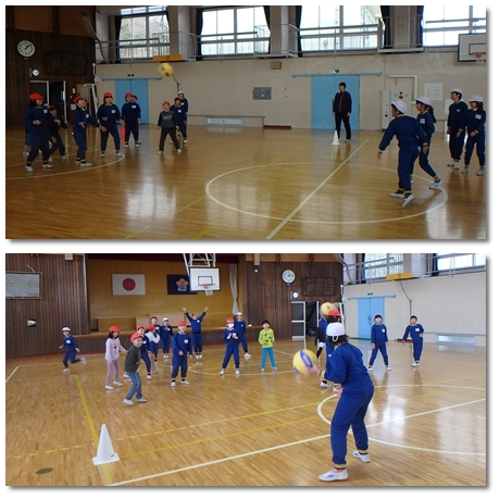 4年生と2年生はなかよし活動で一緒にドッジボールをしました。