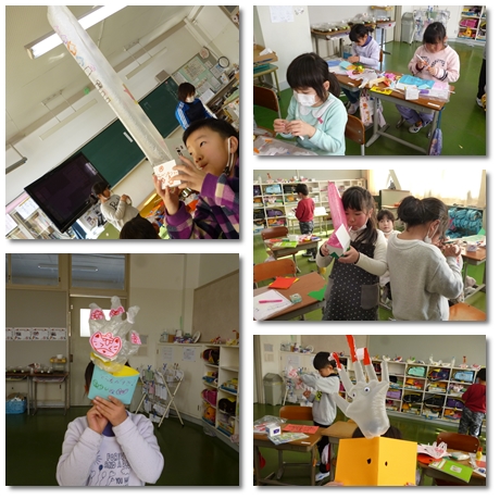 1年生は図工の時間に「なにがでてくるかな?」というテーマで、制作を行いました。