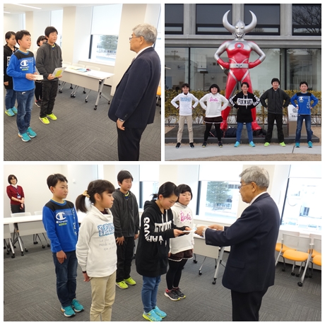 会長さんから感謝状をいただき、学校に帰ってきました。