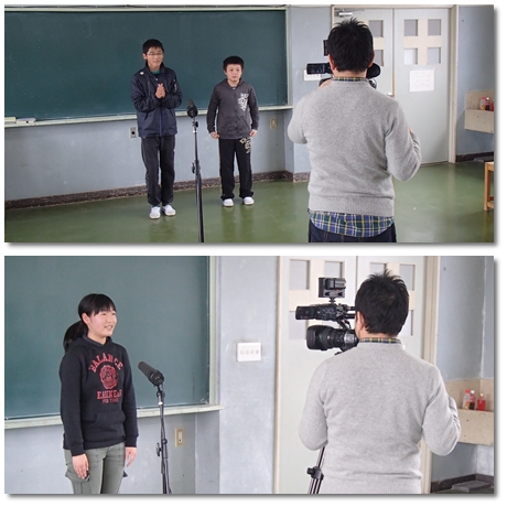 一人ひとりが友達や将来の自分に向けたメッセージを発表し、カメラで録画しました。