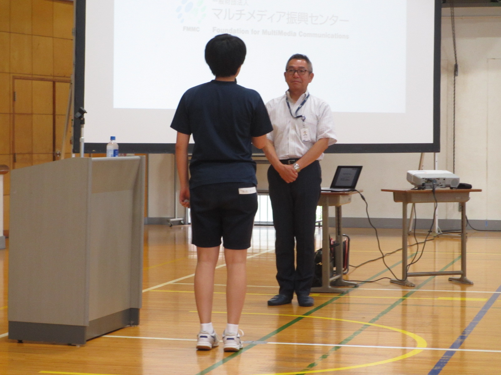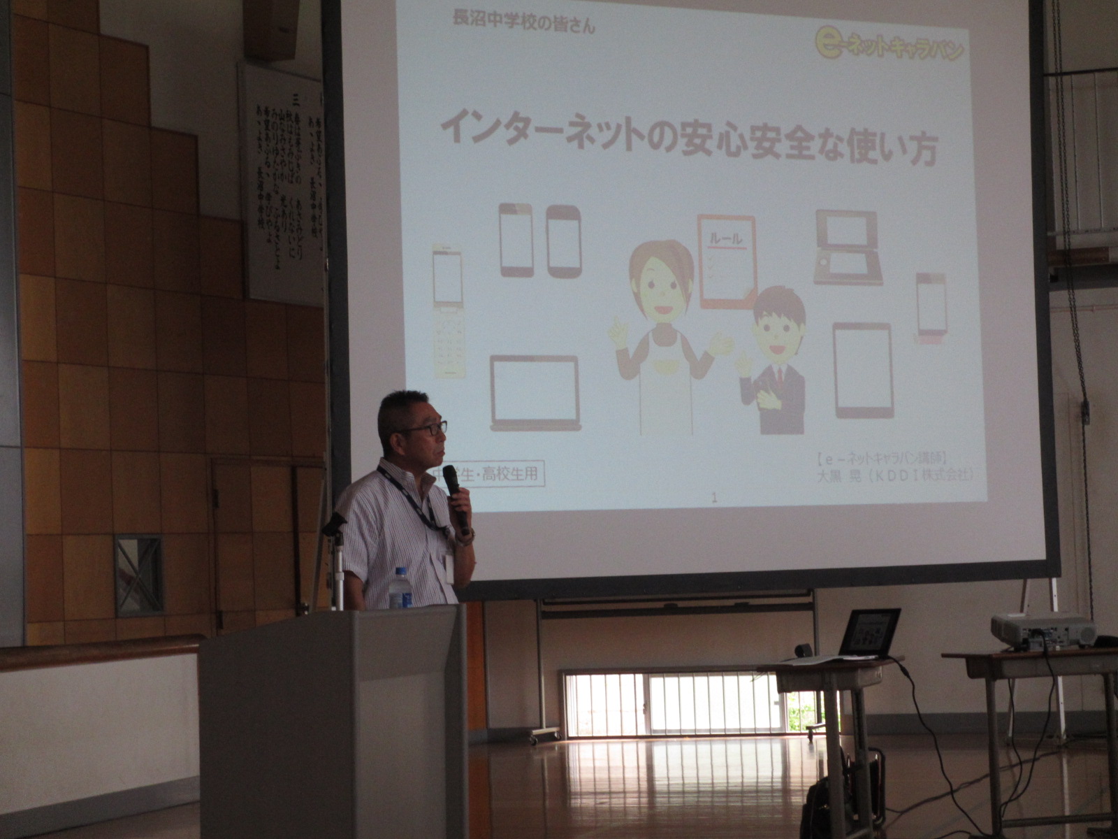 2018年7月12日 17時08分本日6校時、総務省の委託を受け学校などで生徒や保護者向けの講演をおこなっている「eーネットキャラバン」事業の一環として、KDDI東北総支社から派遣された大黒晃様をお迎えし、全校生対象のeーネット安心講座を実施しました。