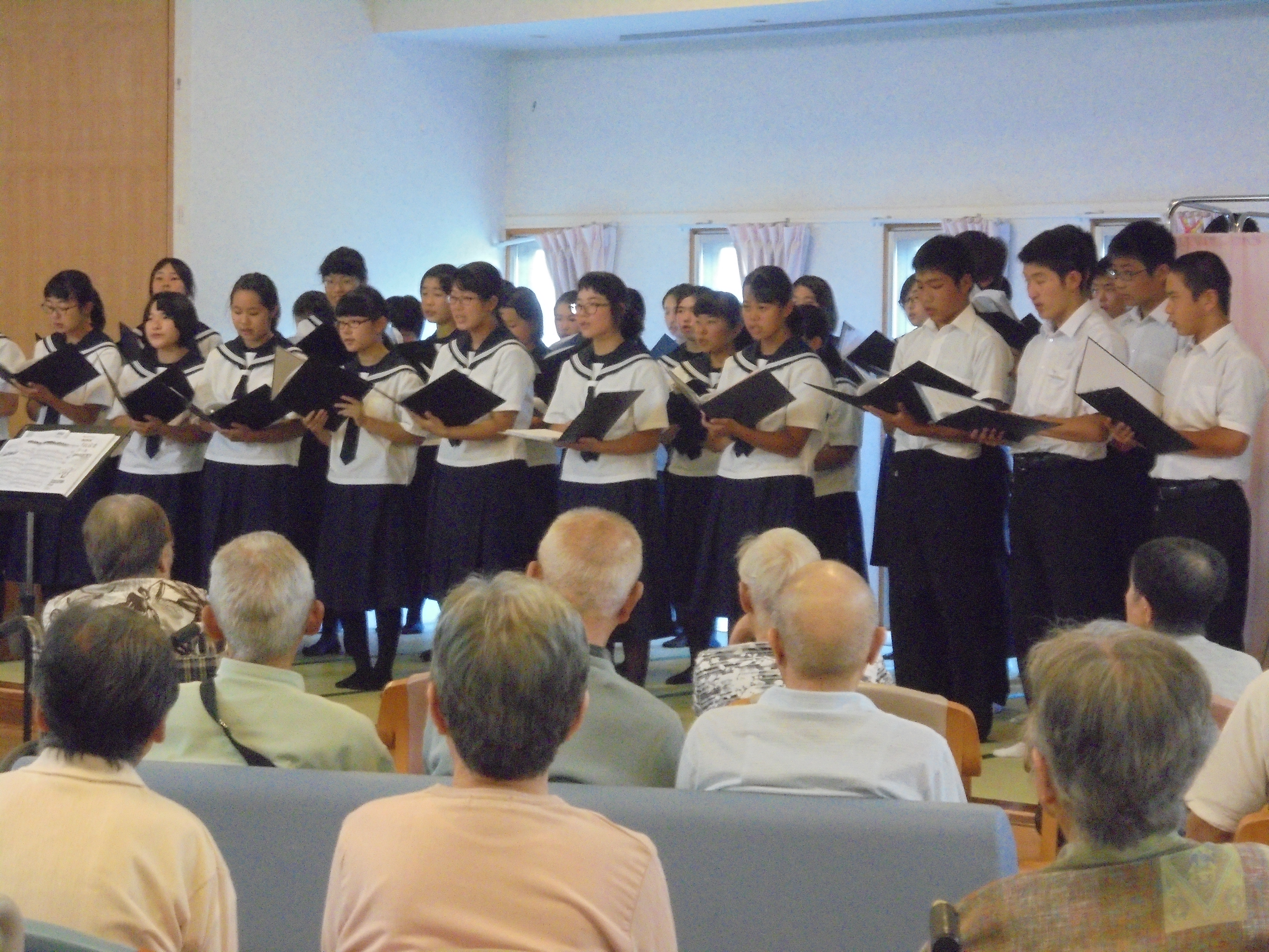 今年は新たに男子も加わり大人数での訪問となりました。集まっていただいた入所・通所されている方々も大勢で、時に真剣に時に笑顔で生徒達の歌声に耳を傾けてくださいました。関係者の皆様にはこのような機会をいただき、本当にありがとうございました。
