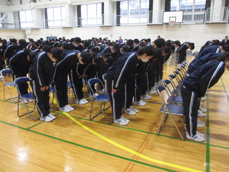 2019年2月19日 16時07分本日(2月19日)、第1回卒業式全体練習を実施いたしました。本日の課題は、卒業式の意義と全体の流れを理解すること、そして座礼や立礼の方法やタイミング、入退場の練習を行いました。すでに学年だけで練習を重ねてきただけあって、3年生の整然とした動きとキリッとした表情が光りました。その雰囲気や動きを察知して、1・2年生の動きも時間とともにすっきりとしてきました。28日(木)の卒業式予行まで練習を積み重ね、平成最後の卒業式を最高の儀式、感動の旅立ちにしてほしいと思っています。