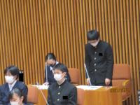 2021年1月26日 06時53分1月25日(月),須賀川市中学生による模擬議会が市役所で開催され,本校からも生徒会代表2名が参加しました。議員となった生徒は,「生活環境について」と題し,昨年長沼地域においてイノシシや熊の目撃情報が多数あったことから,それら野生生物の被害状況,捕獲駆除頭数,そして,長沼地区で今後も安心して暮らすための市としての安全対策などについて堂々と質問しました。