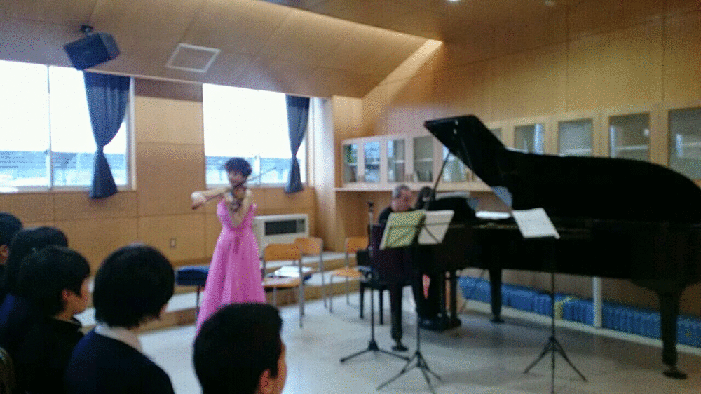 1,2年生の音楽の授業の中でミニコンサートを開いてくださいました。