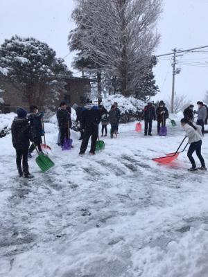 2021年2月18日 10時01分今朝は、大雪。子ども達がさっそく雪かきのお手伝いをしてくれました。