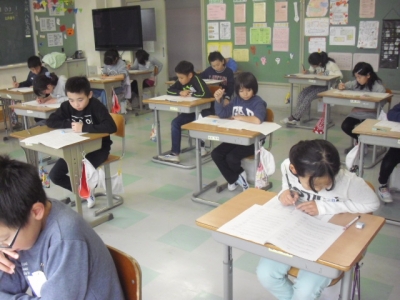 5年生が福島県学力調査を行っています。午前中に国語や算数、午後からは意識調査を行いました。いつも真剣な5年生ですが、いつも以上に真剣な表情でした。
