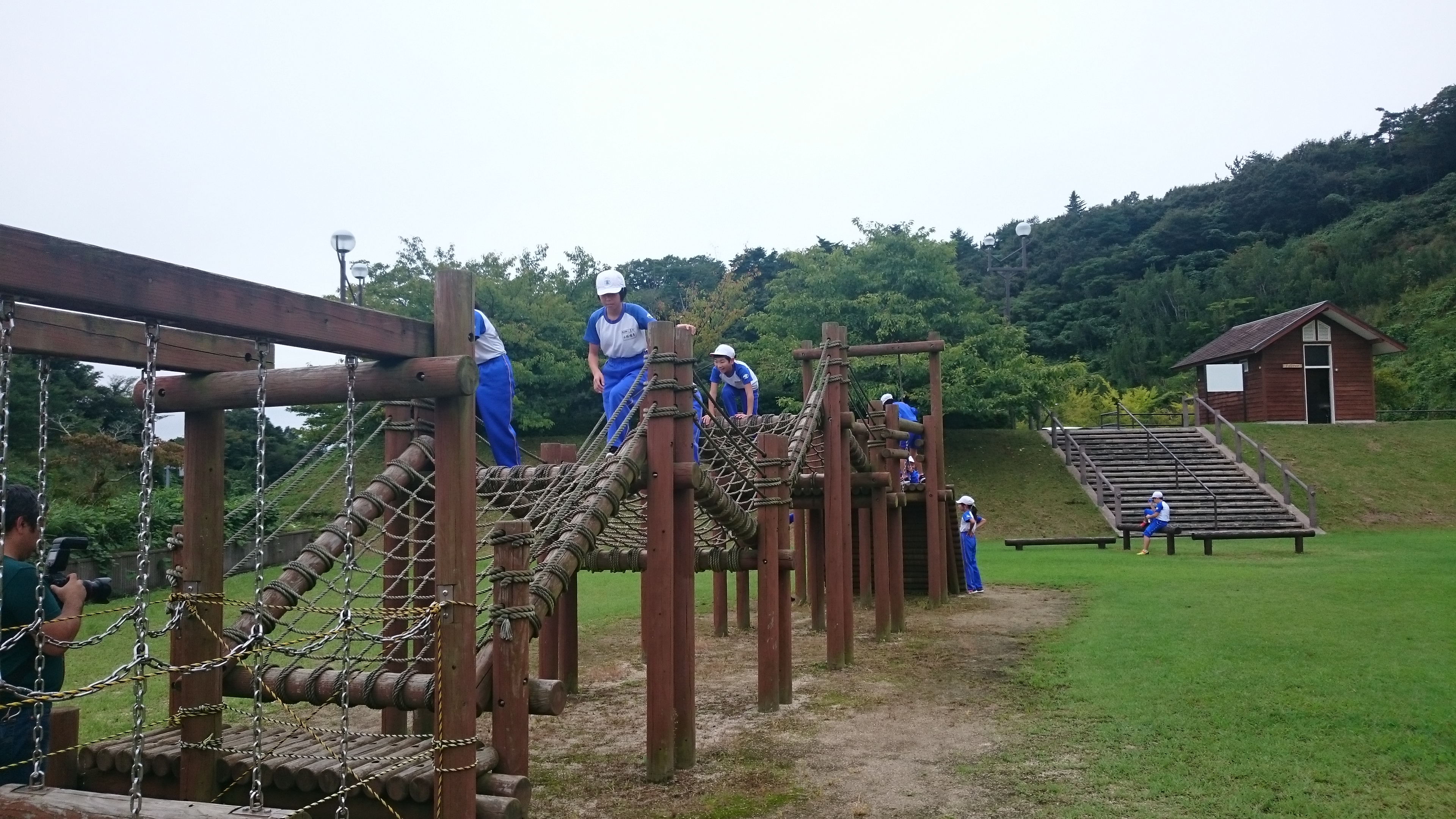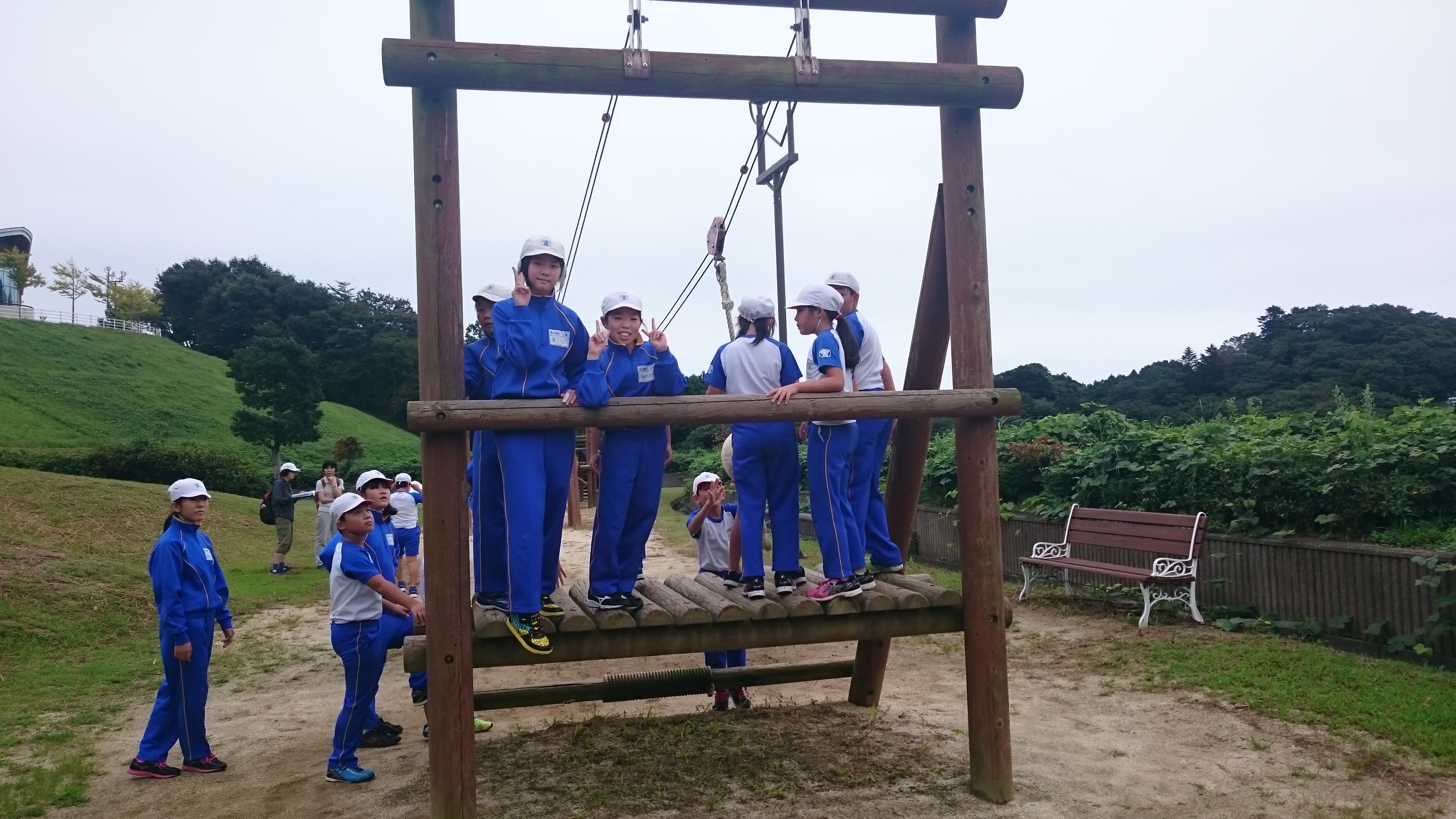 元気にアスレチックに挑戦です。