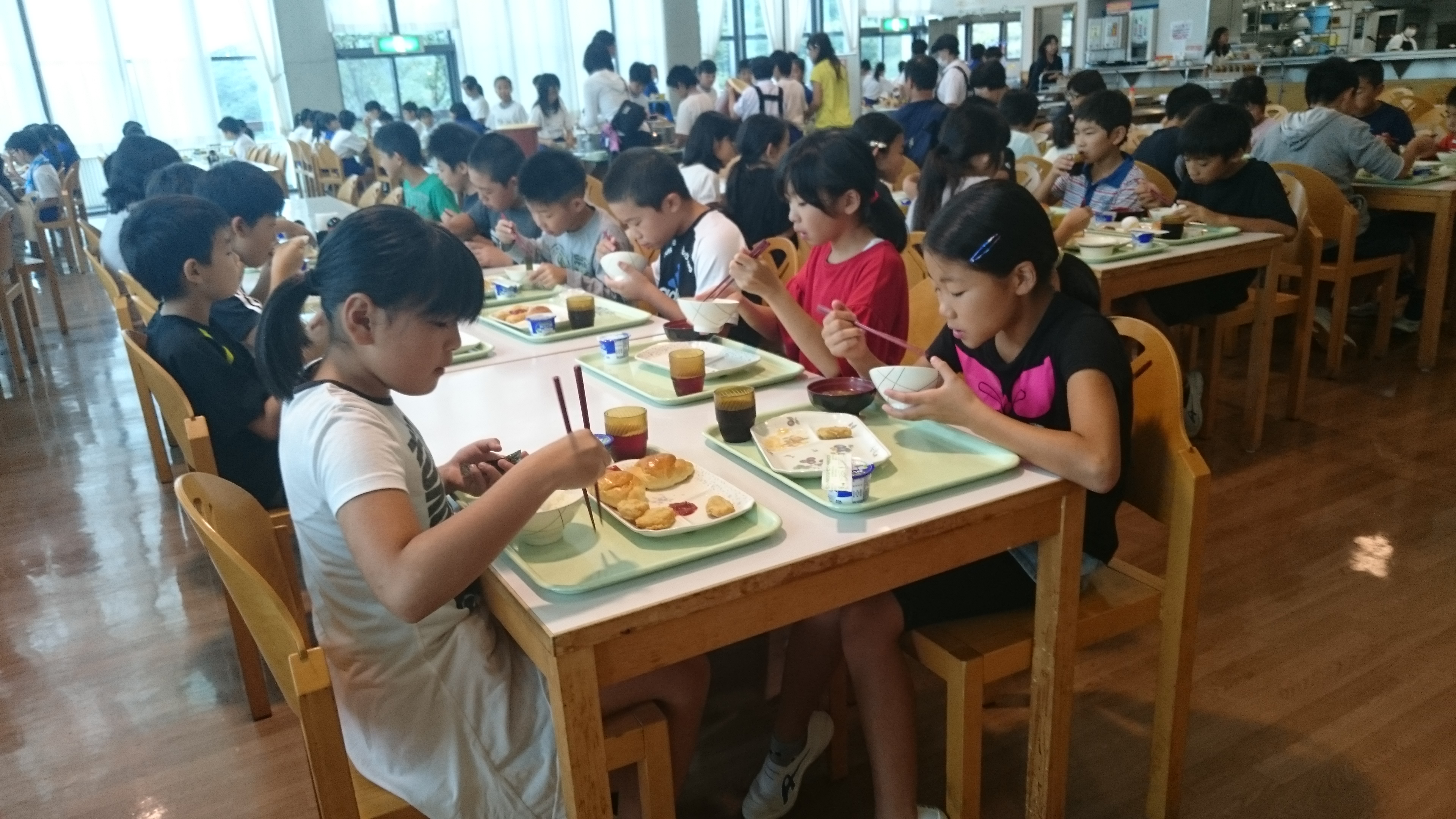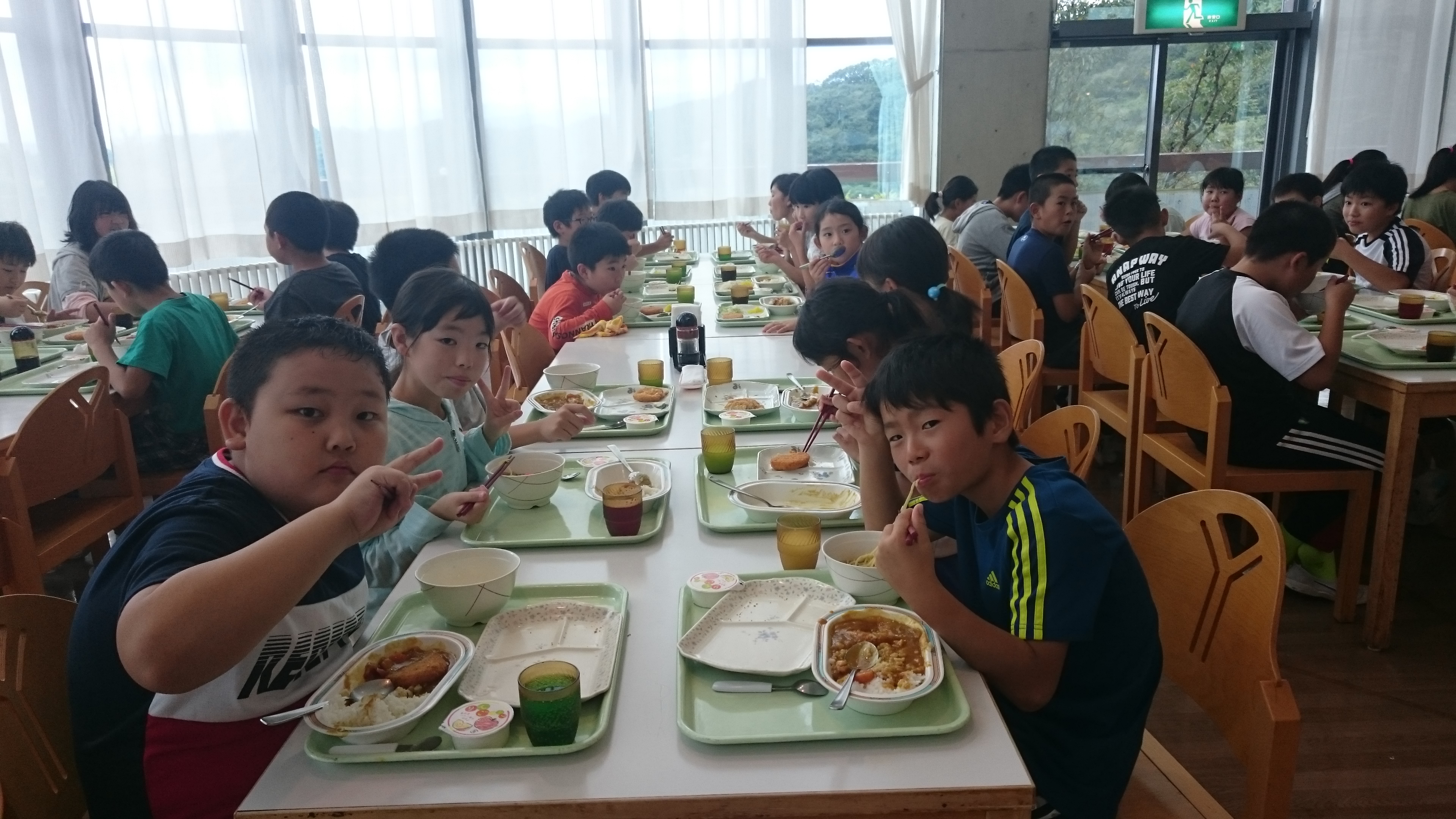 班での食事もこれで最後になります。さあ、別れのつどいを終えたら学校へ出発です。