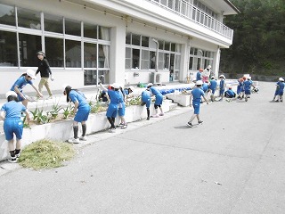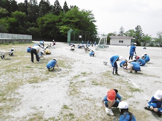 ました。1年生も、校庭の石拾いをしてきれいで安全な