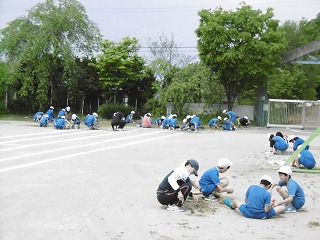 校庭で運動会ができるように頑張りました。