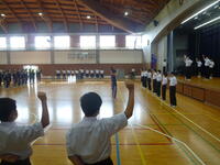 本日6月24日(月)は、中体連県大会の壮行会が行われました。本校からは特設陸上部と特設水泳部が出場します。本日の壮行会も生徒会が主体となって運営を行いました。生徒会からの激励の言葉、選手紹介に続き、応援団による応援が行われ、最後に選手を代表して特設水泳部の生徒からお礼の言葉が述べられました。