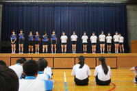 本日9月20日(金)は、新人戦総合大会の選手壮行会が行われました。来週の大会に向けて、選手紹介と決意表明、生徒会からの激励の言葉、応援団による応援が行われました。