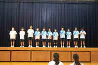 2024年9月20日 15時57分本日9月20日(金)は、新人戦総合大会の選手壮行会が行われました。来週の大会に向けて、選手紹介と決意表明、生徒会からの激励の言葉、応援団による応援が行われました。