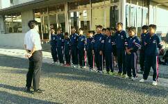 サッカー部(会場 鳥見山陸上競技場)が出発しました。