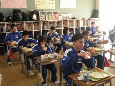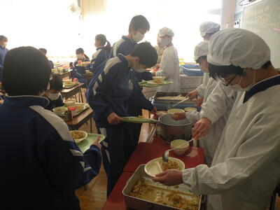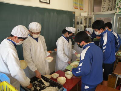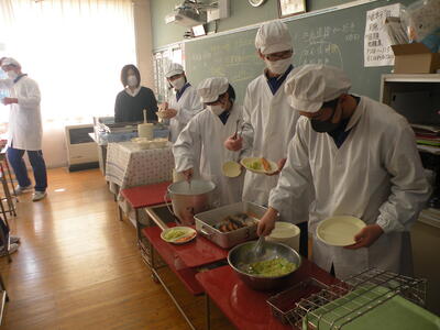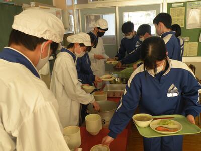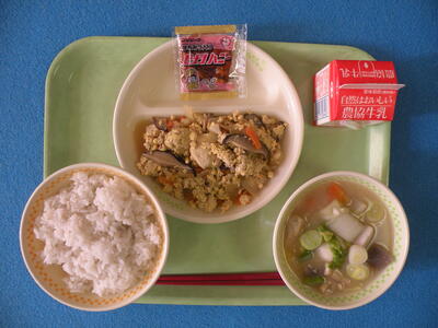 2022年1月26日 12時50分今日のメニューは、麦ごはん・炒り豆腐・三平汁・ピーナッツみそ・牛乳でした。ピーナッツみそは小さいときによく食べていた記憶があります。今日は2年生教室を訪問しました。いつもより準備が早かったですね!
