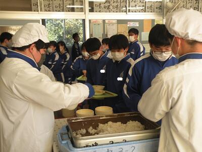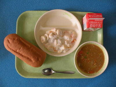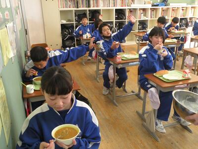 2022年1月25日 13時00分今日の給食は50年前のメニューだそうです。コッペパン・カレーシチュー・ヨーグルト和え・牛乳でした。まさに私の小学校時代の給食です。このような献立だったのですね。皆さんはどう感じましたか。今日は1年生教室を訪問しました。