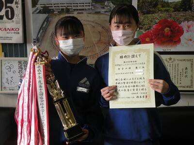 2022年1月25日 10時40分第34回協会杯中学生インドアソフトテニス大会が22日(土)に須賀川アリーナで開催されました。女子の部で2年生ペアが見事に優勝しました。今後益々の活躍が期待されます。おめでとうございました。