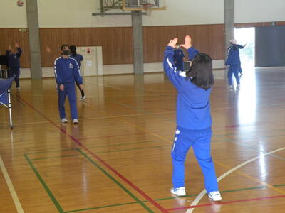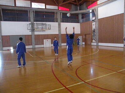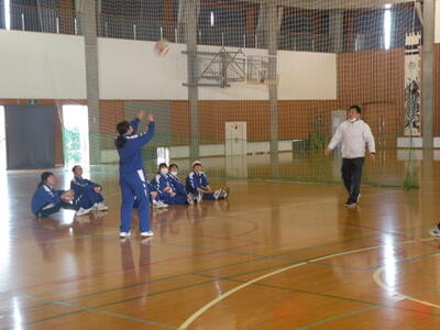 2022年1月25日 11時40分今日から2年1組はバレーボールの授業に入りました。始めにボールを使っての運動を、その後オーバーハンドパスへと移りました。教科担任からの分かりやすい説明とバレー部の生徒の模範演技で、たいへんに分かりやすい授業が展開されていました。