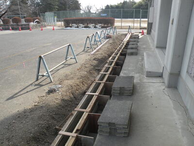 2022年1月25日 13時20分校舎周辺のひび割れや側溝の工事も計画的に進められています。室内の至る所で写真のように、ひび割れた所に注射器のようなもの?で接着剤的なものを注入する作業が始まりました。改めて地震の被害の大きさを感じました。生徒の皆さんも学校生活を送るうえで十分に気をつけてください。