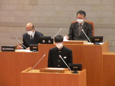 2022年1月26日 15時20分本日、令和3年度の須賀川市中学生による模擬議会が開催されています。須賀川一中・二中・三中・西袋中・小塩江中の順で前半部の一般質問が行われました。本校の生徒並びに各学校の代表生徒の質問はたいへんにすばらしく、「これからの須賀川市も大丈夫!」と確信できました。質問にお答えいただきました市長様始め、教育長様・市の関係部長様、ありがとうございました。なお、詳細につきましては、学校だよりや「広報すかがわ」をご覧ください。