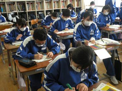 2022年1月21日 17時00分第3回進路対策委員会が開催されました。今日は県立高校の願書と調査書等の点検です。また2人ペアとなって行われました。3月3日(木)~5日(土)に行われます前期選抜試験に向けての取り組みも本格化してきました。受験生諸君、頑張るのは今です!