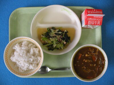 2022年1月21日 12時50分今日のメニューは、麦ごはん・ポークカレー・海藻サラダ・牛乳でした。待ちに待ったカレーライス、今日もやっぱり美味しかったです。今日は2年生教室を訪問しました。みんなカレーは大好きなようです。
