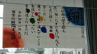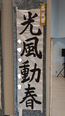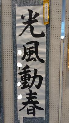 2022年1月24日 09時10分前にもお知らせしましたとおり、第61回新春書道展が22日(土)・23日(日)tette(テッテ)たいまつホールで開催されました。本校生徒3名の作品も展示されていました。小学生も中学生もそして、どの児童生徒の作品もたいへんにすばらしいものでした。