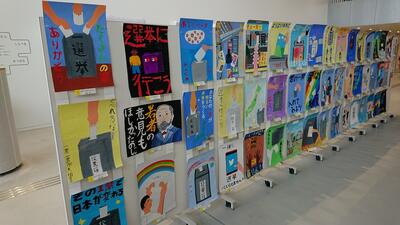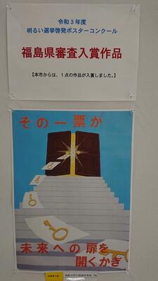 2022年1月24日 09時20分書道展より、本校の教職員のお子さま(姉妹)の作品も展示されていました。とても力強いですね!さて、誰でしょうか?また、同会場で「あかるい選挙啓発ポスターコンクール」も開催されていました。(~30日まで)本校の2年生女子の作品が県審査に入選し中央審査に進んでいます。西中生の作品が63点展示されており、小中合わせて約3分の1以上を占めていました。すばらしい作品ばかりです。