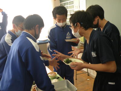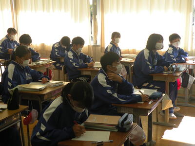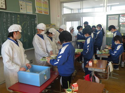 2021年12月8日 12時50分今日のメニューは、麦ごはん・大根とぶた肉の炒め煮・ほうれん草ともやしの卵チーズ和え・牛乳でした。どのメニューも野菜がとても美味しいです。今日は2年生教室を訪問しました。2年生のあいさつもとてもすばらしいです。読書をしている生徒が多く見られます。※放送委員の生徒、毎日楽しい放送を流してくれています。