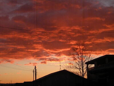 ※今朝(6時30分)自宅から見た朝焼けです。猪苗代町は初雪だったそうです。 |