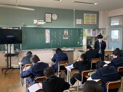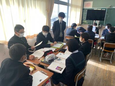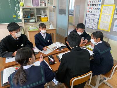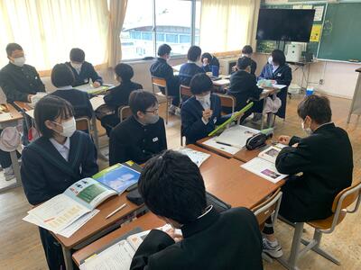 2021年11月24日 13時50分教材「挑戦し続けること」を活用し、困難に直面しても、目標達成に向けて強い意志を持ち、前向きに努力していこうとする心情を育てることを目標に掲げ、授業が進められました。生徒たちはグループで意欲的に話し合い、すばらしい意見が数多く出されました。皆さんもぜひ今日の授業を参考にして今後の学校生活を送ってください!