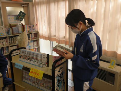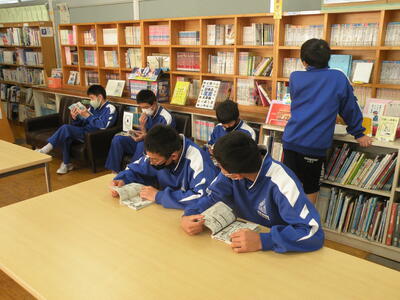 2021年11月24日 14時40分校庭ではサッカー、図書室では読書をしている生徒が多いです。図書室に行きカメラを向けると大歓迎です。「はい、ポーズ。」それぞれに有効に昼休み時間を過ごしています。午後の授業も頑張りましょう!
