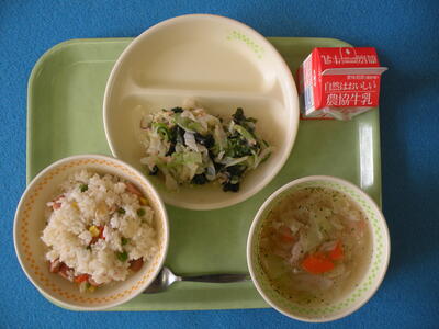 2021年10月15日 17時30分今日のメニューは、イタリアンライス・海藻サラダ・コンソメスープ・牛乳でした。今日はメニューのみ掲載いたします。※校内レクリエーションのワンシーンをもうちょっとだけご紹介します。