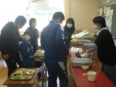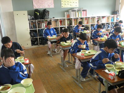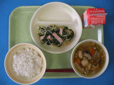 2021年10月20日 12時50分今日のメニューは、麦ごはん・生揚げの中華煮・ほうれん草とハムのナムル・牛乳でした。地産地消献立のため、福島県産・須賀川市産の食材が使われていました。今日は1年生教室を訪問しました。いつも元気と活気があっていいですね!